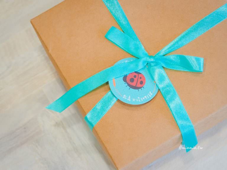 上頭以女孩們喜愛的藍綠色緞帶裝飾,而小瓢蟲就好像迫不及待撲倒在蛋糕上等著我打開包裝